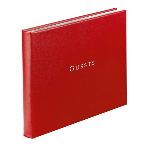 |  | Guest BookElegant leather guest book sets the tone for your next event and are suitable for many occasions, from weddings to business or social events. Includes 160 acid-free archival lined pages with gilt edges. Enough room for your most important guests signatures 8-1/2" x 6-3/4" GOLD EMBOSSED PERSONALIZATION IS AVAILABLE FOR $15. PLEASE SPECIFY IN NOTES SECTION OF ORDER.